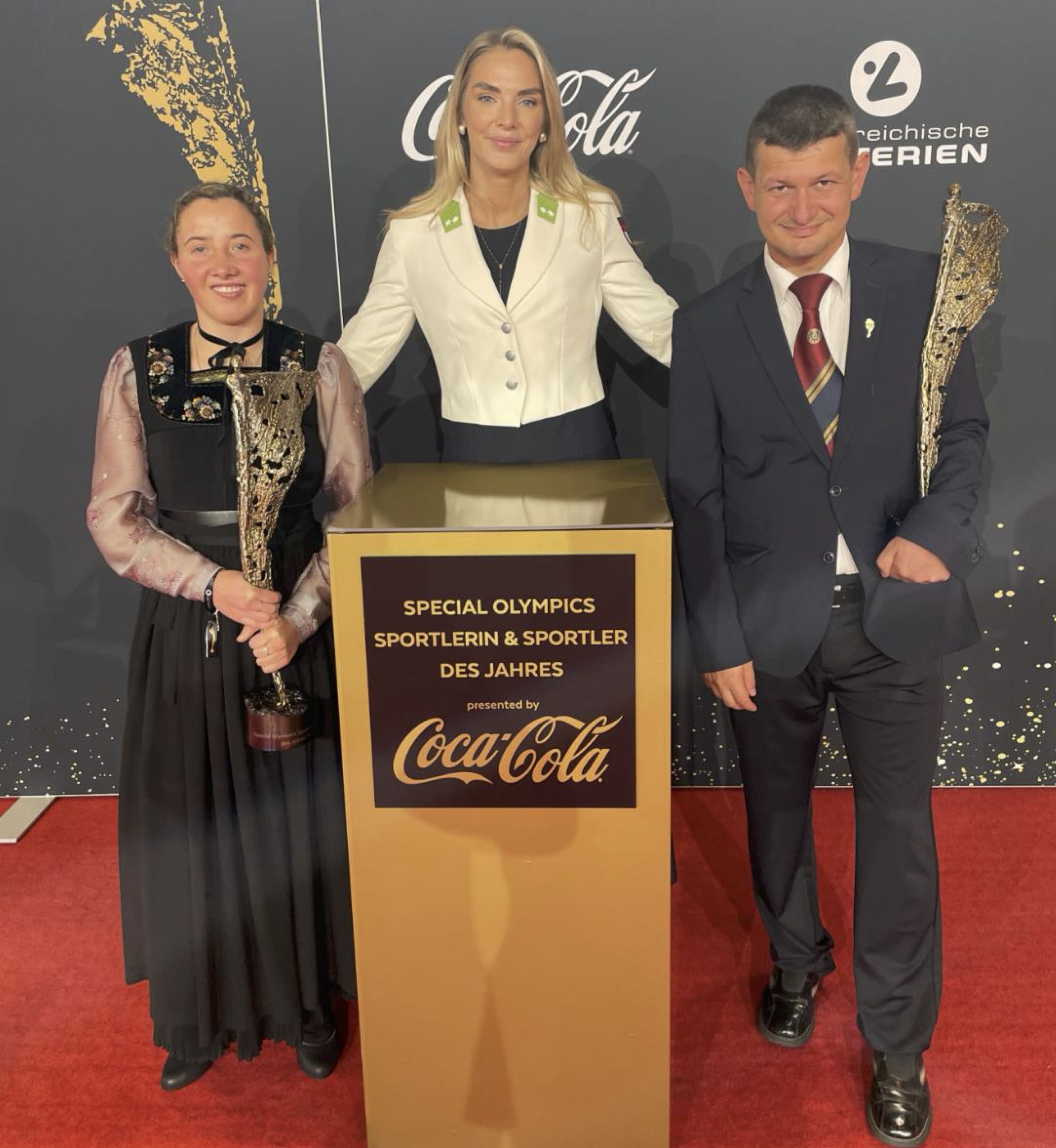 Der Westen Österreichs darf jubeln: Die heurigen Special-Olympics-Sportler des Jahres kommen aus Vorarlberg und Tirol: Die beiden Skifahrer Jasmin Heim und Alexander Haissl wurden gestern bei der diesjährigen LOTTERIEN Sporthilfe-Gala in der Wiener Stadthalle mit der begehrten Trophäe namens „NIKI“ ausgezeichnet - übergeben von Leichtathletikstar Ivona Dadic.