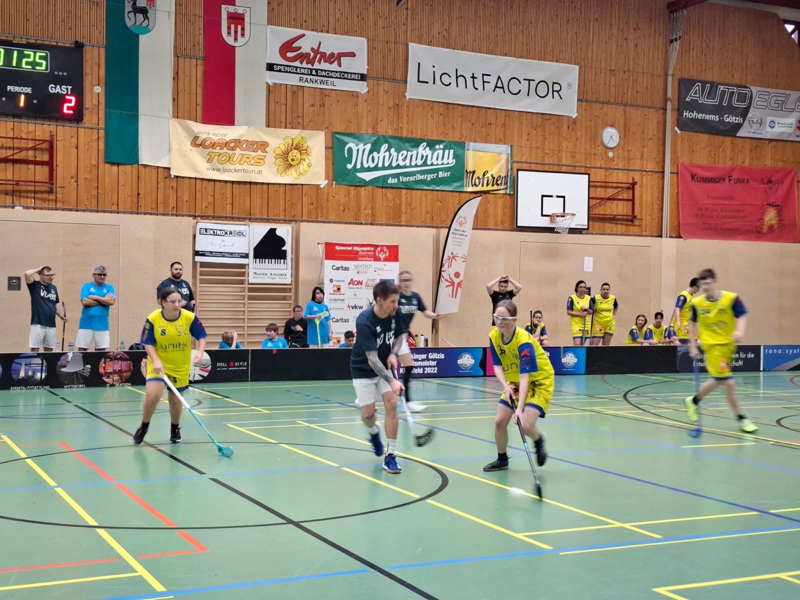 Insgesamt fünf Teams traten gegeneinander an, darunter auch ein Team des UHC Götzis. In spannenden Begegnungen zeigten alle Mannschaften großen Einsatz und Teamgeist. Die Spiele waren durchwegs fair geführt, zugleich jedoch intensiv und hart umkämpft – genau das, was den Unified-Gedanken im Floorballsport ausmacht.