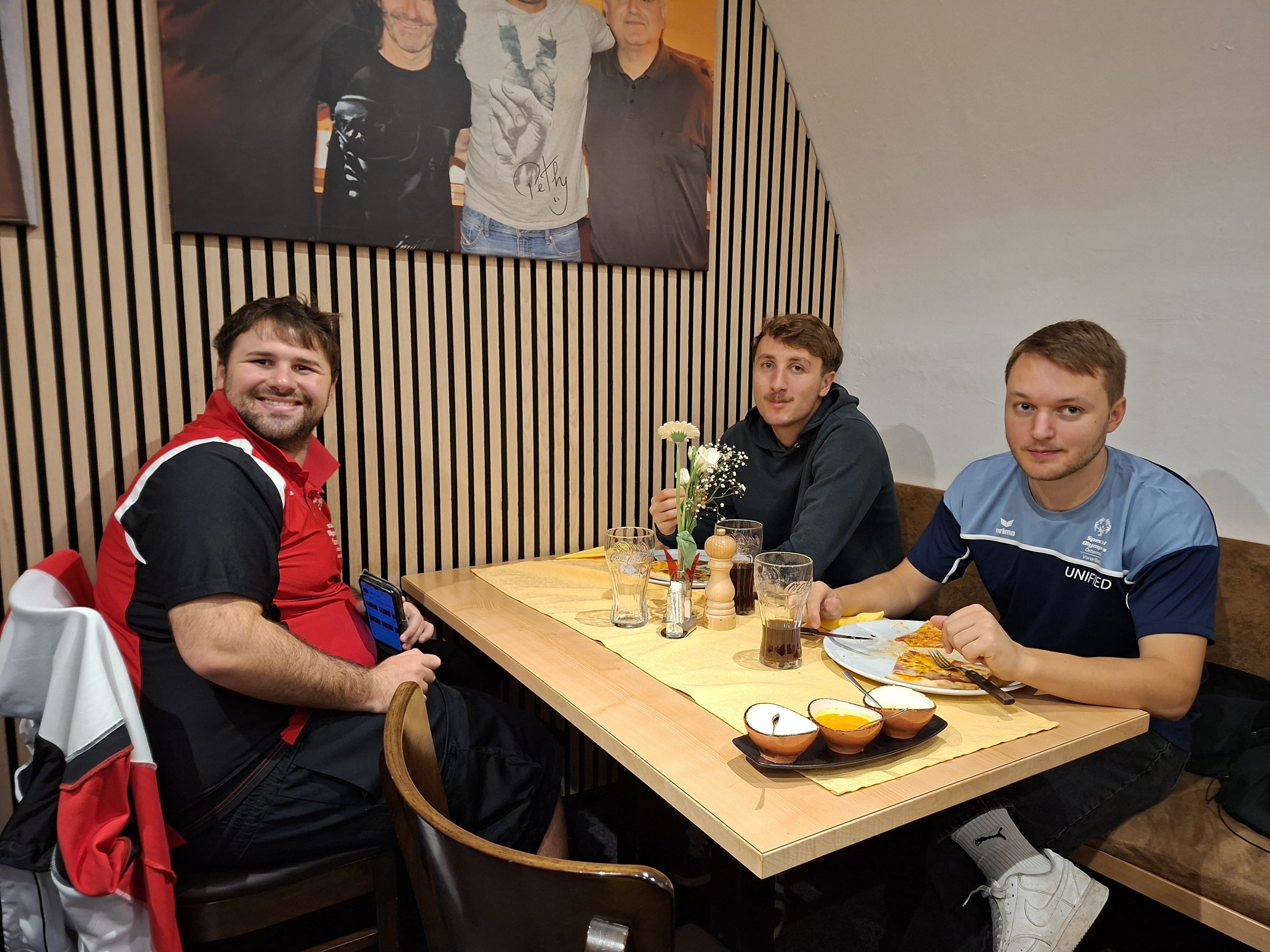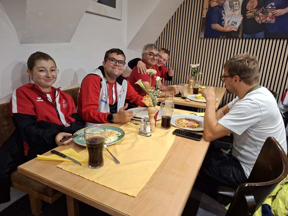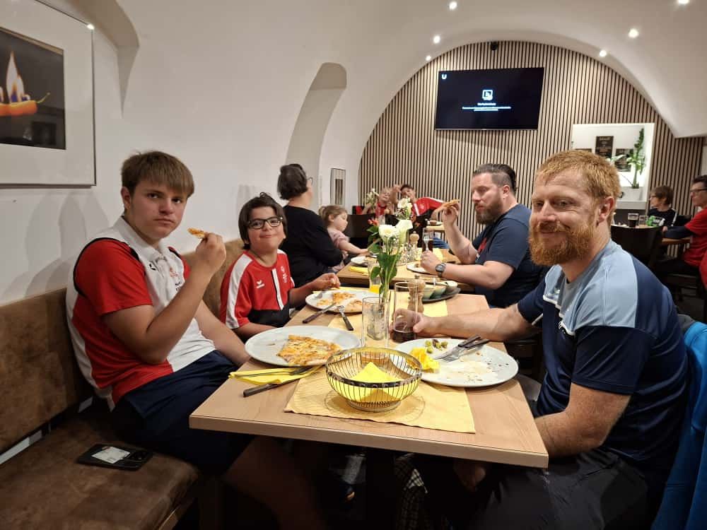 Als gelungener Abschluss dieses sportlichen Vormittags genossen Spieler:innen, Unified Partner:innen und Betreuer:innen ein wohlverdientes gemeinsames Mittagessen in der Pizzeria Antonio.